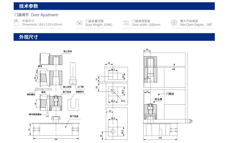 門扇調(diào)節(jié)外型尺寸:156*110*42mm